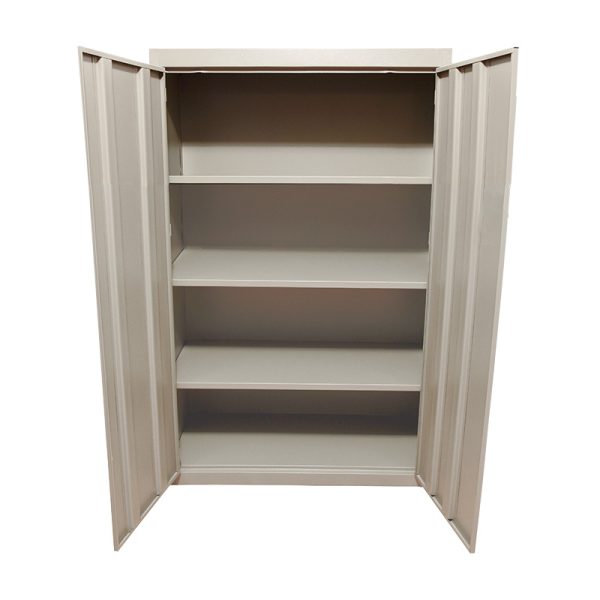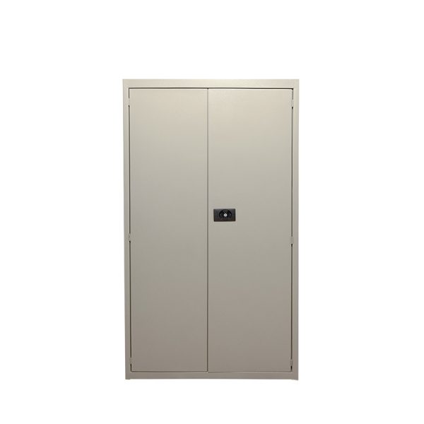 El cuerpo y las puertas son ensamblados mediante soldadura por resistencia. Cuenta con entrepaños fijos reforzados para mayor resistencia en cada división. Dos puertas abatibles, las puertas de los gabinetes se abren y cierran por medio de tres bisagras, cada puerta cuenta con 2 refuerzos verticales. Una puerta lleva su cerradura empotrada fabricada en plásticos ABS tipo paleta, incluye dos llaves y su estiradera.