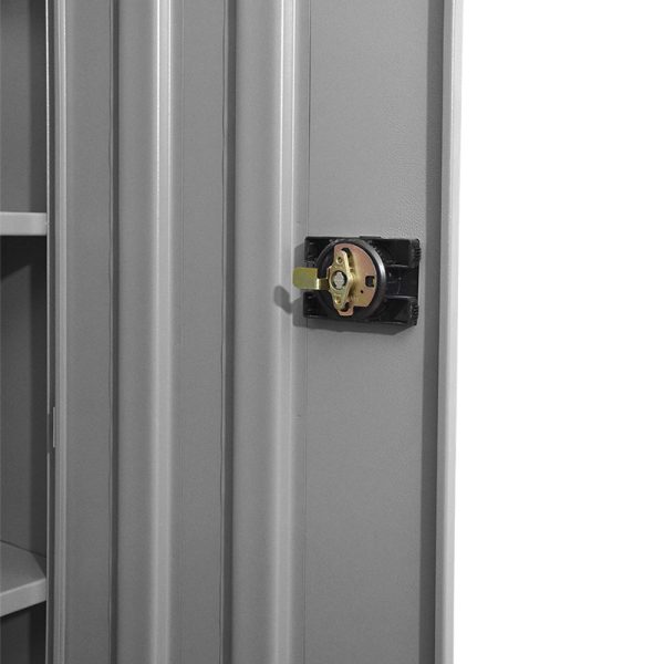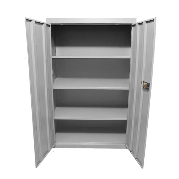 El cuerpo y las puertas son ensamblados mediante soldadura por resistencia. Cuenta con entrepaños fijos reforzados para mayor resistencia en cada división. Dos puertas abatibles, las puertas de los gabinetes se abren y cierran por medio de tres bisagras, cada puerta cuenta con 2 refuerzos verticales. Una puerta lleva su cerradura empotrada fabricada en plásticos ABS tipo paleta, incluye dos llaves y su estiradera.