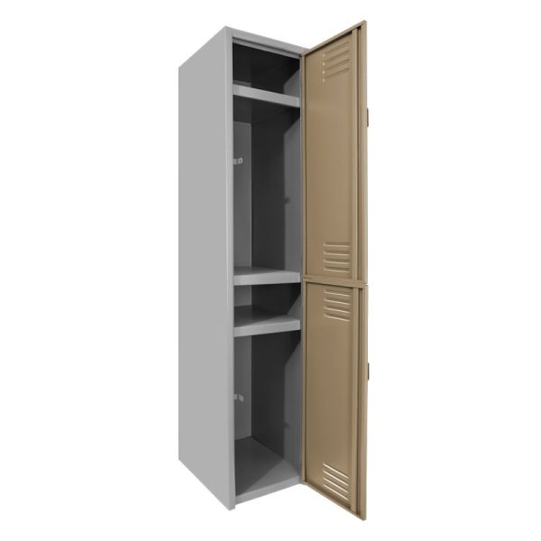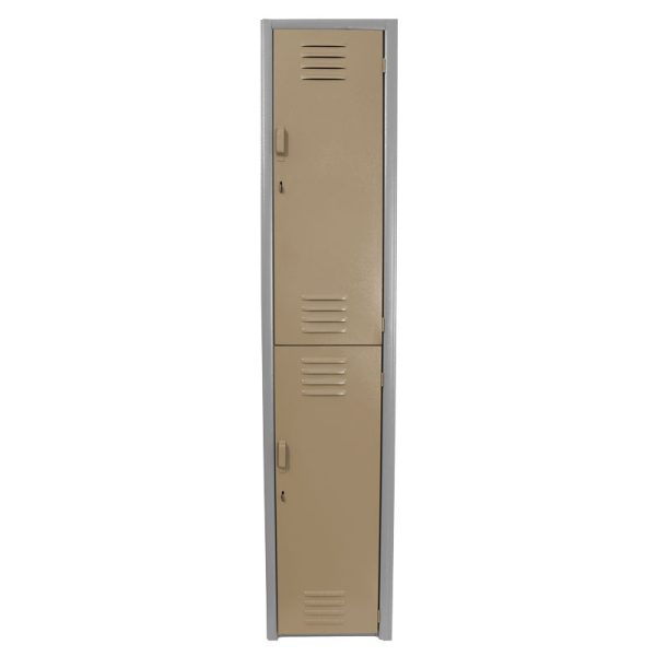 El cuerpo y las puertas son ensambladas mediante soldadura por resistencia. Las puertas se abren y cierran por medio de 2 bisagras tipo libro. Cada puerta cuenta con 2 rejillas de ventilación, estiradera y portacandado. Color gris o arena