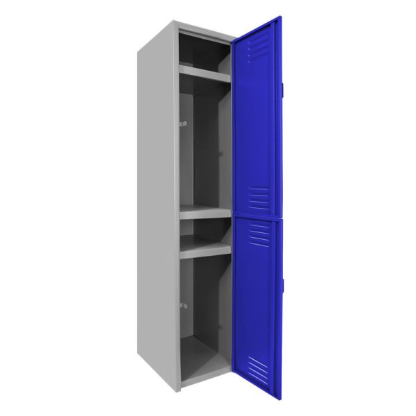 El cuerpo y las puertas son ensambladas mediante soldadura por resistencia. Las puertas se abren y cierran por medio de 2 bisagras tipo libro. Cada puerta cuenta con 2 rejillas de ventilación, estiradera y portacandado. Color gris o arena